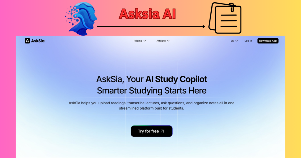 Asksia is an AI-powered study assistant that helps students upload readings, transcribe lectures, ask questions, and organize notes—all in one seamless platform.