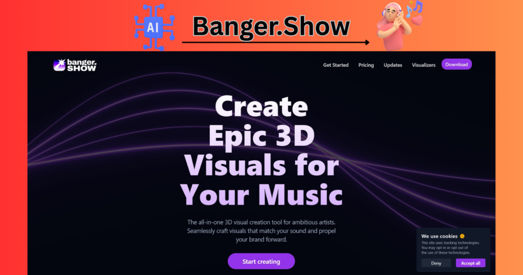- Banger.show is a AI tool that is used by Musicians, DJs, and content creators for creating stunning audio-reactive 3D music visualizations.
